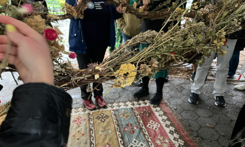 Afterward, Lena Chen led We Lived the Gaps Between the Tales, a efficiency meant to precise gratitude for abortion staff. The piece was tailored from work she had made whereas she was in residence at Wave Pool Gallery. The preliminary work resembled a big wreath inside which herbs related to reproductive well being have been interwoven.