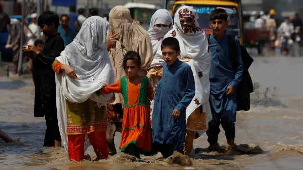 “Since mid-June, the truth is, Pakistan has been battling one of the crucial extreme, completely anomalous cycles of torrential monsoon climate,” he mentioned. Rainfall throughout that point was thrice the typical, and as much as six occasions larger in some areas, he mentioned.